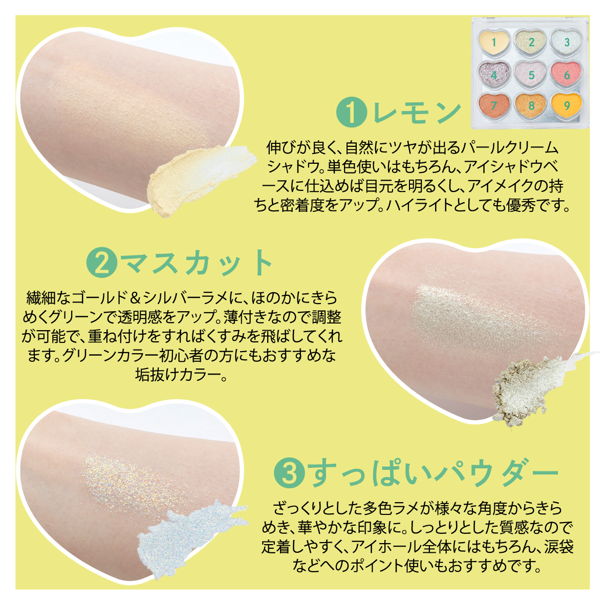 ① レモン:パールクリームシャドウ。単色使いはもちろん、アイシャドウベースにも◎。