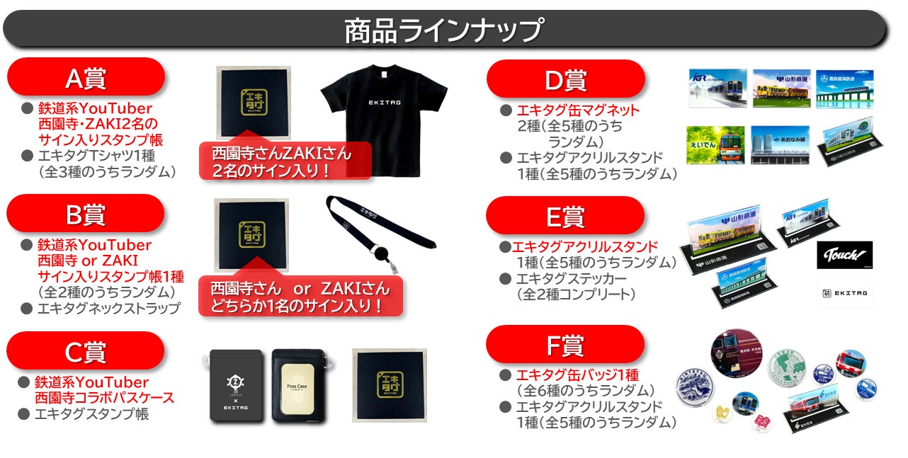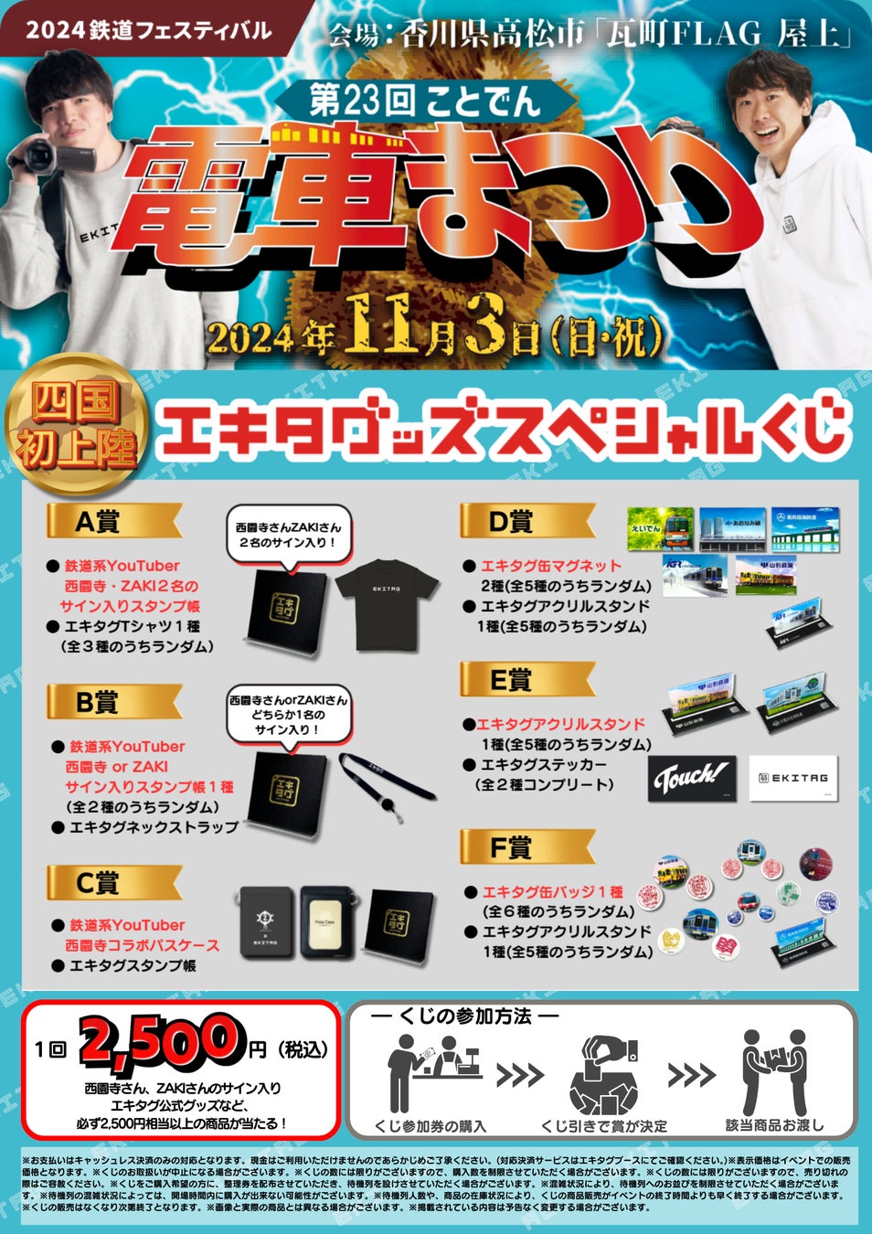 ◎ 会場の「エキタグブース」では、鉄道系YouTuber西園寺さんとZAKIさんとコラボレーションした「エキタグッズスペシャルくじ」を、「四国初上陸!」でラインナップ新たに販売予定。