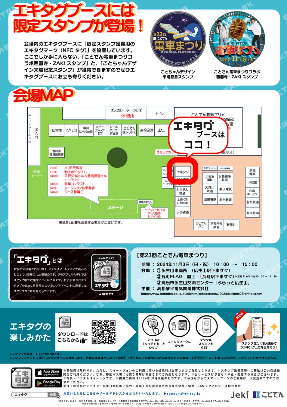 ◎「エキタグ」は、2024年11月3日(日・祝)に香川県高松市「瓦町FLAG 屋上」で開催される鉄道フェスティバル「第23回ことでん電車まつり」へ初出展いたします。