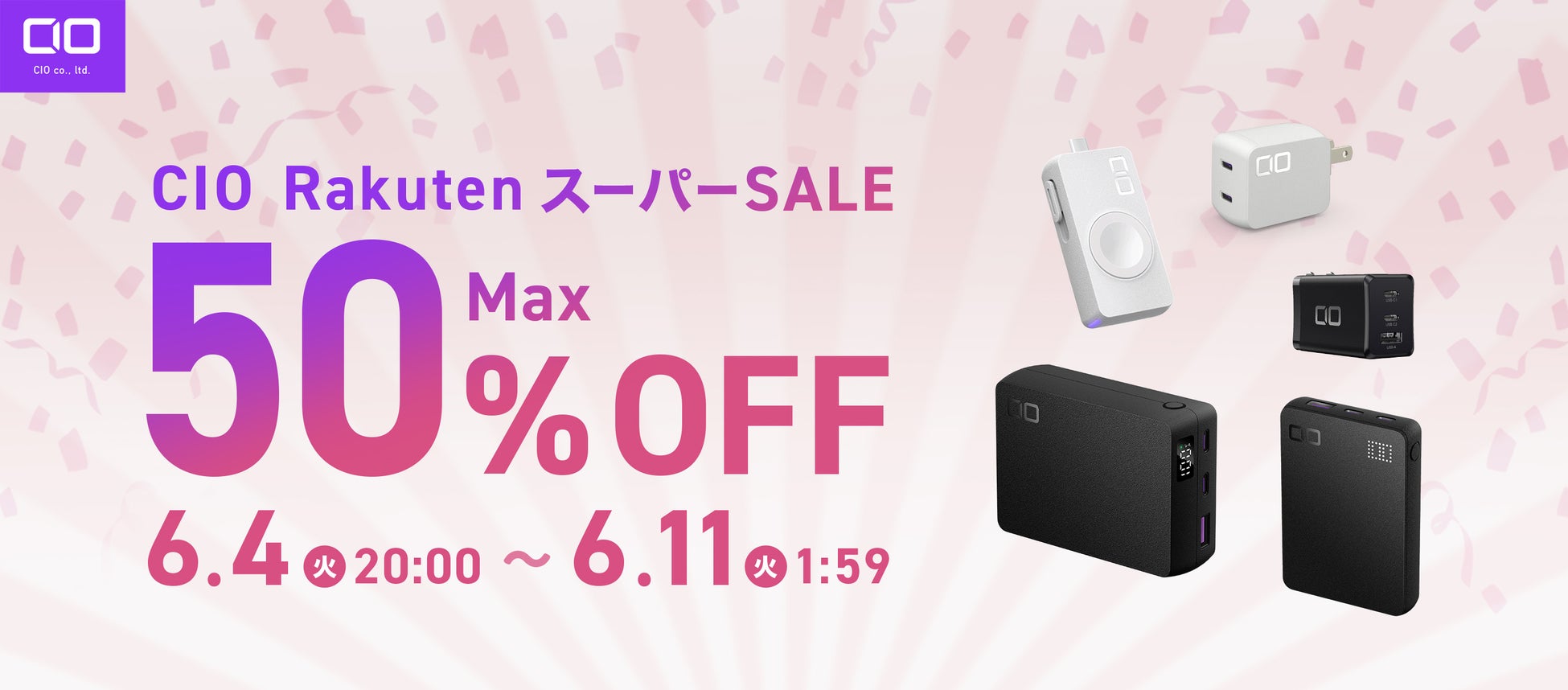 小型・高出力のモバイルバッテリー「SMARTCOBY」シリーズや、小型のGaN急速充電器「NovaPort」シリーズなどを展開する株式会社CIOは、「楽天スーパーセール」に、売れ筋製品や新商品を最大50%OFFにて販売いたします。