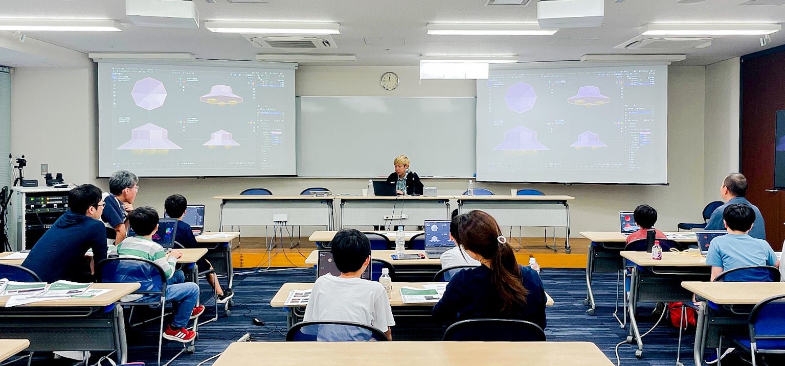 本講座では、親子での共同参加を通じて、日頃子どもたちが触れるゲームや映像コンテンツにおいて作り手であるCGクリエイターについて興味を持っていただくことを目指しました。各ステップに丁寧な解説を交えたハンズオンのワークショップでCGモデリングを体験し、CGクリエイターの役割や基礎知識についてを学びました。