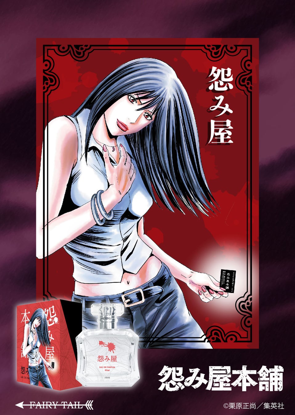 香水の輸入販売を手がけるフェアリーテイル株式会社(東京都港区)は、栗原正尚原作の漫画『怨み屋本舗』のキャラクターをイメージした香水を発売します。アクリルスタンド、アクリルキーホルダー、クリアファイルも同時発売です。当社オンラインストア「DREAMING PRINCESS」と、Amazon、楽天市場で当社が運営する「フレグランスファンタジー」では2025年4月4日(金)より販売を開始します。Magnet by Shibuya109の直営店舗「FAIRYTAIL」でも販売予定です。