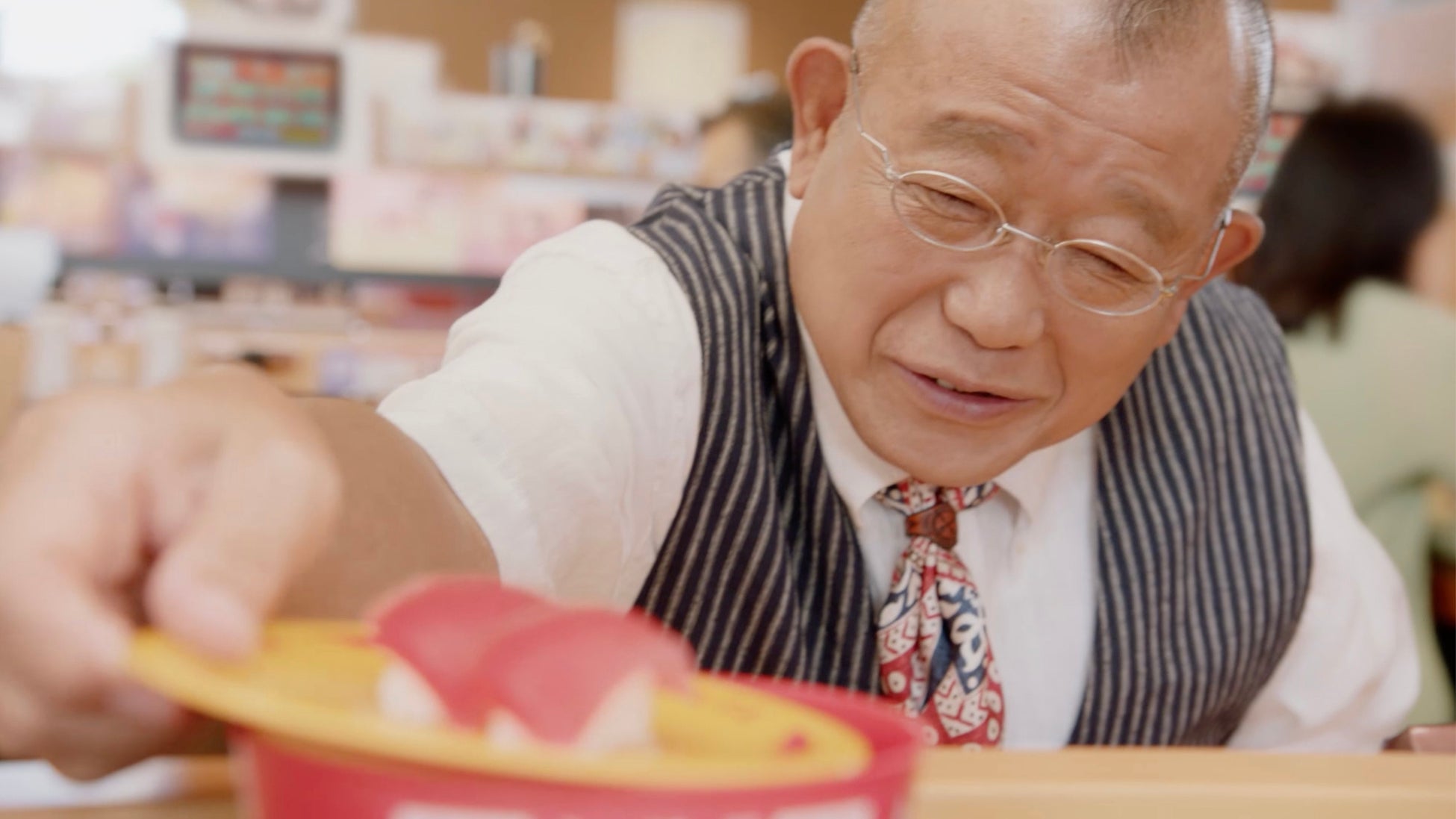 本CMでは鶴瓶さんにお昼時にスシローにお越しいただき、スシローのおすしをご堪能いただきました。通常より量が少ない“ミニしゃり”で召し上がっていただき、「これくらいの(サイズの)しゃりがいい」とコメントをいただきました。また、通常より小さいサイズのミニパフェもお楽しみいただき、最後は「いろいろあるから好きや~」とおすしからスイーツまで「昼スシロー」を存分に体験していただきました。