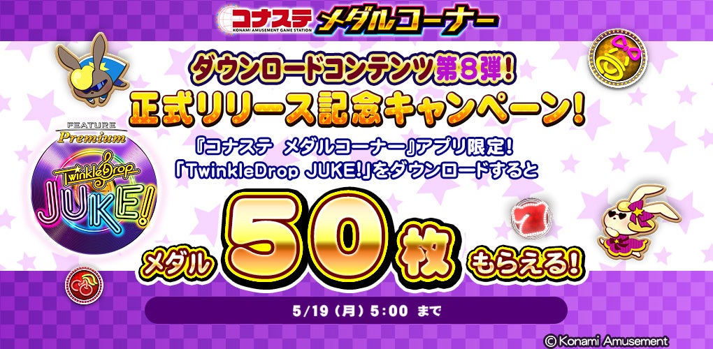 また、「フィーチャープレミアム TwinkleDrop JUKE!」をアプリ内ダウンロードコンテンツとして『コナステ メダルコーナー』に追加したことを記念したキャンペーンも実施しています。