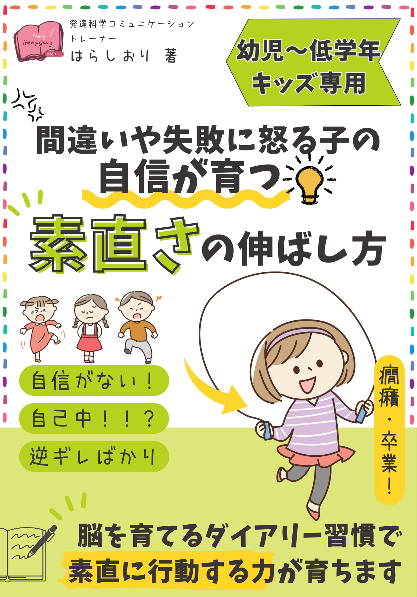 初めまして、親子のコミュニケーションをスムーズにして子どもの発達を加速させる「発達科学コミュニケーション」トレーナーのはらしおりと申します。この度、『間違いや失敗に怒る子の自信が育つ!素直さの伸ばし方』電子書籍無料ダウンロードを開始しました。