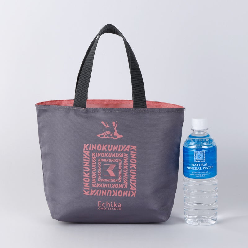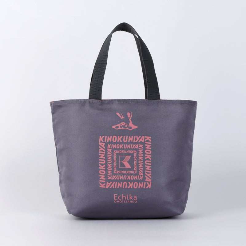 かわいらしいピンクとシックなグレーのリバーシブル仕様で、その日の気分やコーディネートに合わせて使い分けいただけます。表面には紀ノ国屋のロゴを、裏面には「エチカ表参道」のマスコットキャラクター「エチカちゃん」の愛らしいデザインをあしらい、日常使いにもぴったりなアイテムに仕上げました。20周年を迎える「OMO KINOKUNIYA エチカ表参道店」に、ぜひお立ち寄りください。