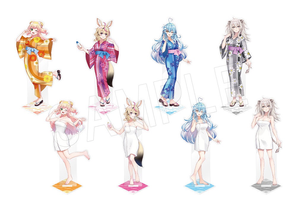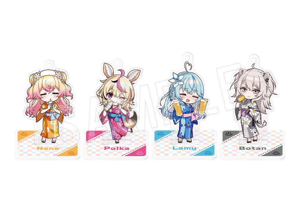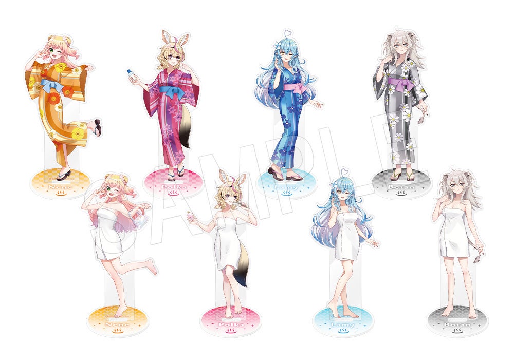 ラインナップ:桃鈴ねね(浴衣ver.)、尾丸ポルカ(浴衣ver.)、雪花ラミィ(浴衣ver.)、獅白ぼたん(浴衣ver.)、