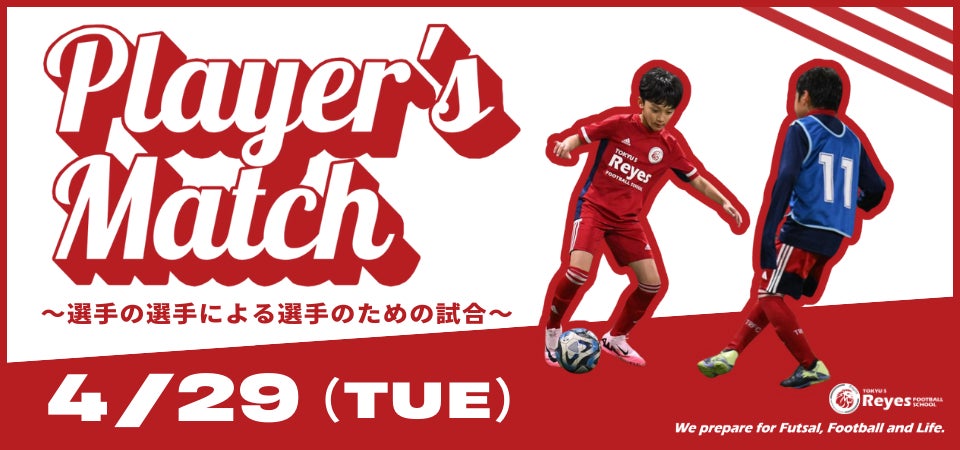 東急Sレイエス フットボールスクール 池袋では、選手の選手による選手のための試合『Player's Match』を開催いたします。