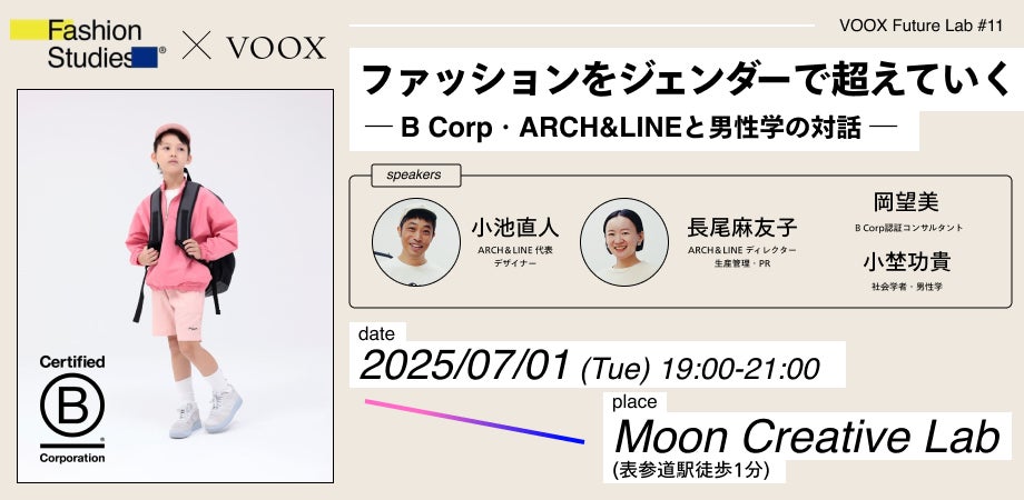 7/1開催!「ファッションをジェンダーで超えていく ―B Corp・ARCH&LINEと男性学の対話」VOOX Future Lab #11 FashionStudies®︎共同開催