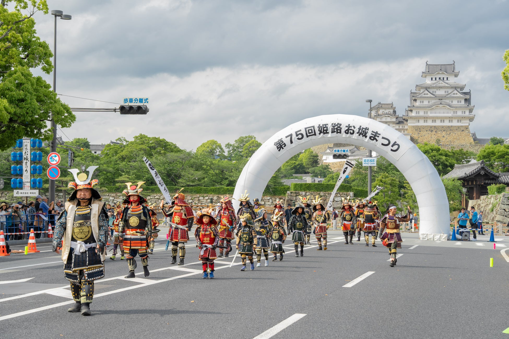 今回のパレードは城南線北詰「姫路城前」をスタート。南進し、国道2号線(大手前交差点)までのコースとなっています。