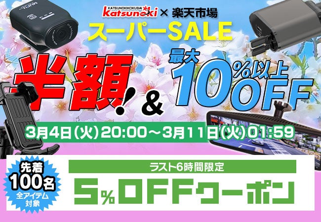 【楽天スーパーSALE】MAXWINのデジタルミラーやバイク用ドライブレコーダーが半額以上の超特価!ラスト6時間100名限定全アイテム対象クーポンも発行中!