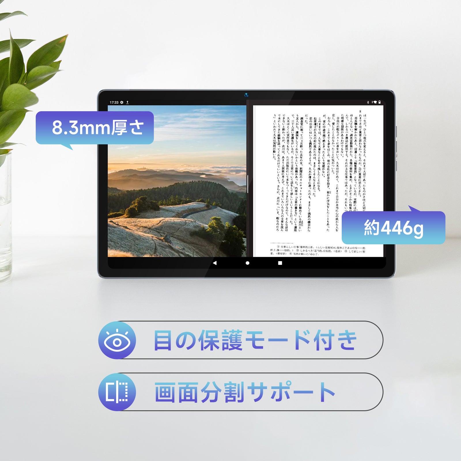 超軽量・超薄型タブレットで、ランドスケープ、マルチウィンドウ操作、目の保護モード、ダークカラーモード、画面分割、保護者による使用制限など、様々な機能をサポートします。
