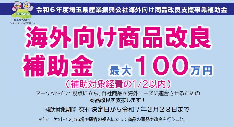 【埼玉県】令和6年度「海外向け商品改良支援事業補助金」の募集開始
