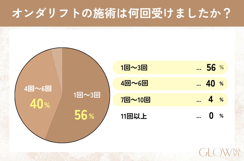 オンダリフトの施術回数に関しては「1~3回」と回答した人が56%、「4~6回」が40%。
