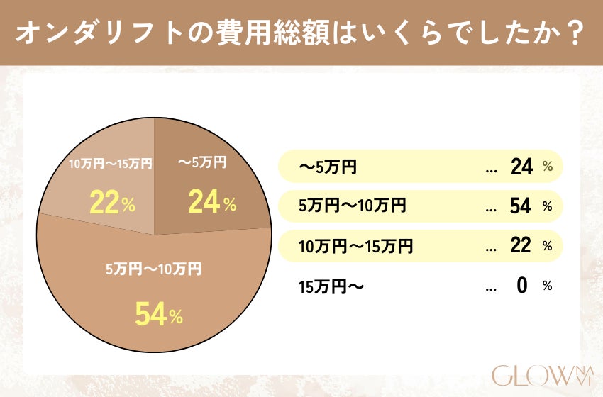 施術費用の総額が「5万円~10万円」と回答した人は54%で過半数を占めた。