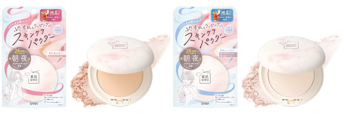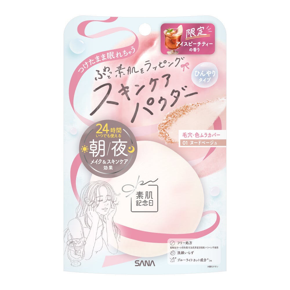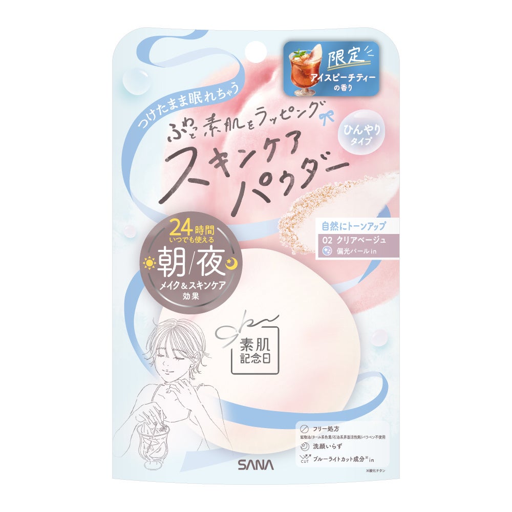 2025 年6 月3 日、ノエビアグループの常盤薬品工業株式会社(本社:東京都港区)は、ナチュラルメイクブランド『素肌記念日』より、つけたまま眠れる「スキンケアパウダー N」の「アイスピーチティーの香り」を限定発売いたします。
