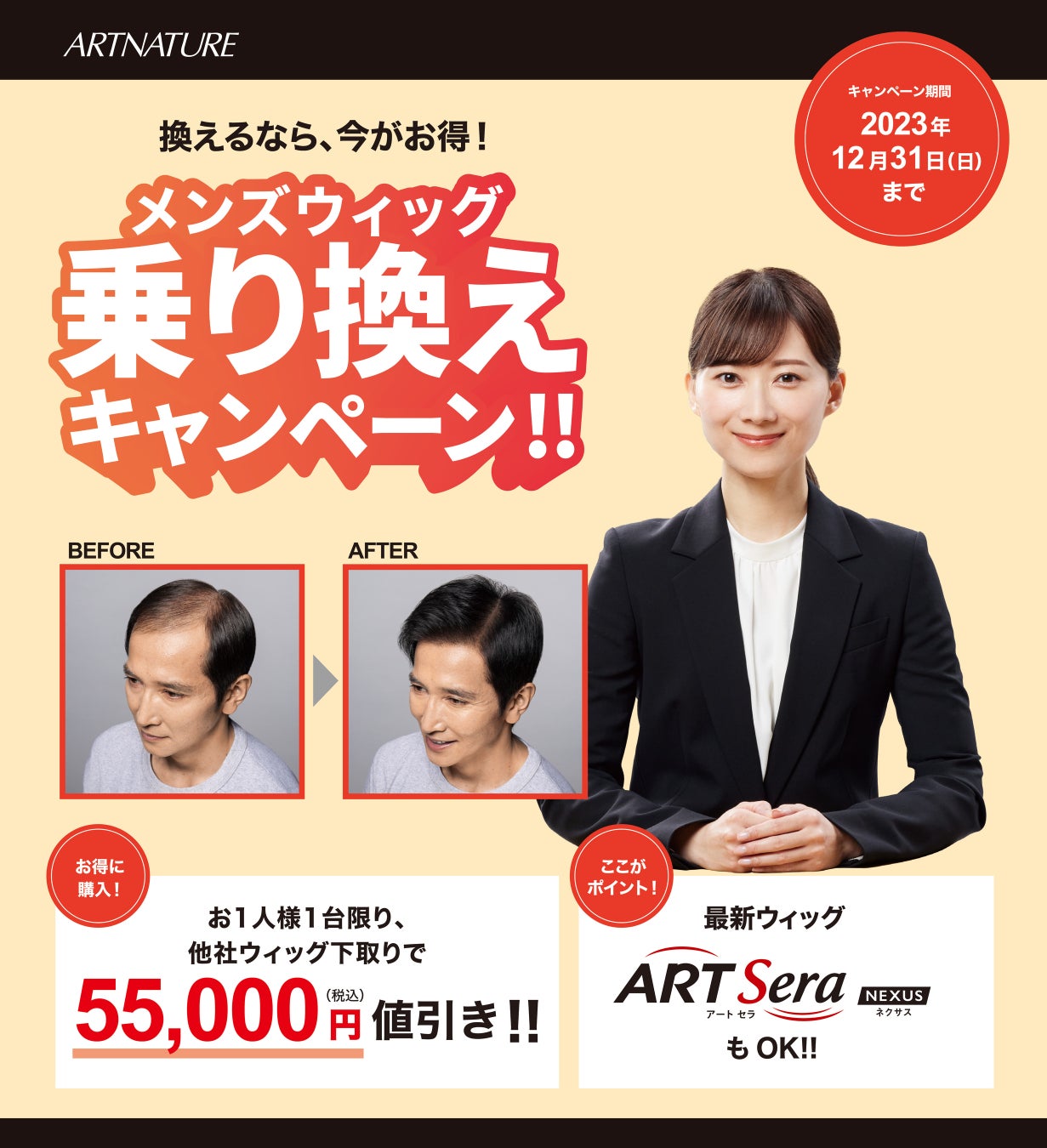 換えるなら、今がお得!アートネイチャー 『メンズウィッグ乗り換えキャンペーン』 を開始!