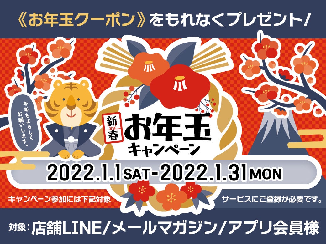 【期間限定】寅年生まれ割2,022円引きなどお年玉クーポンをプレゼント【新春お年玉キャンペーン】2022年1月1日から開催決定!