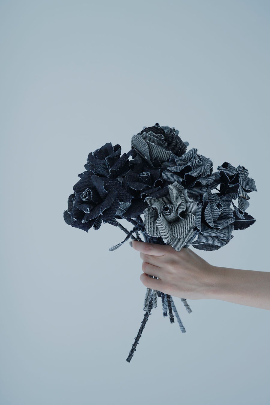 【MADE IN JAPAN DENIM SERIES(メイド イン ジャパン シリーズ)】の生産過程で生じた廃生地の“ストックファブリック”を利用して製作したアーティシャルフラワー。ギフトや、インテリアに最適です。