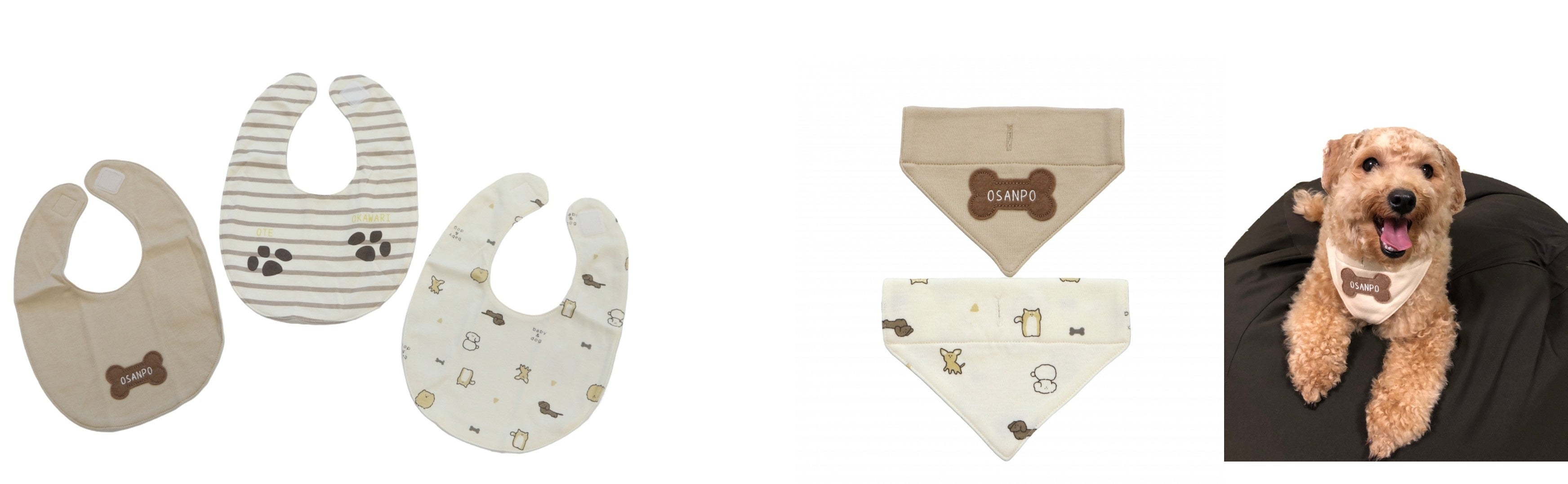 左)スタイ3枚組 イヌ 丸型 1,299円(税込)