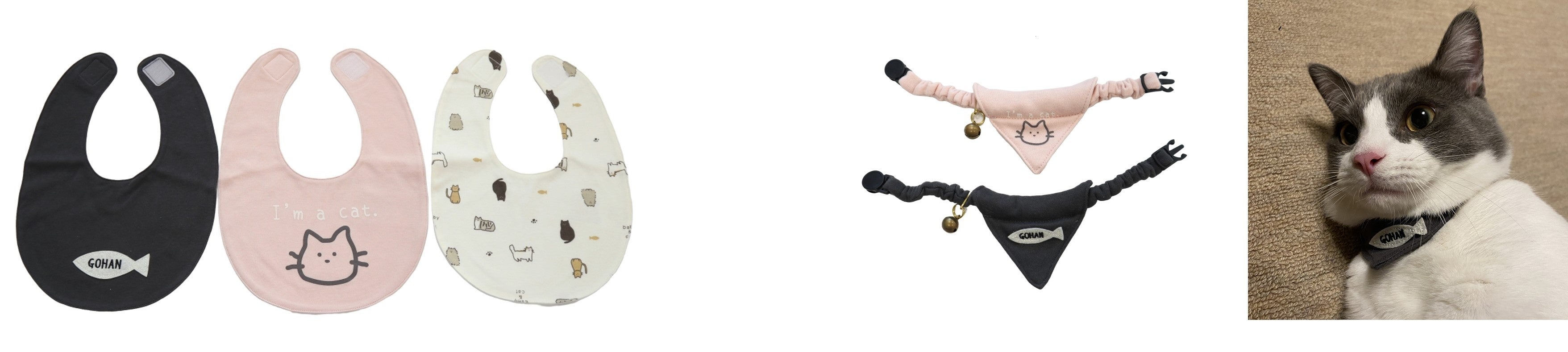 右)猫用スタイ2枚組 サカナ×ネコ 1,099円(税込)