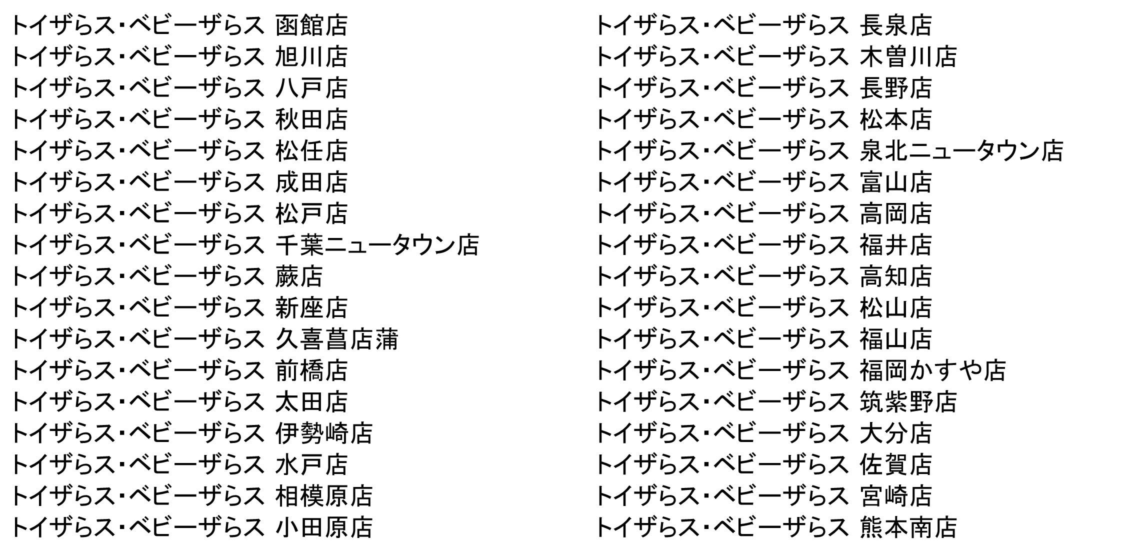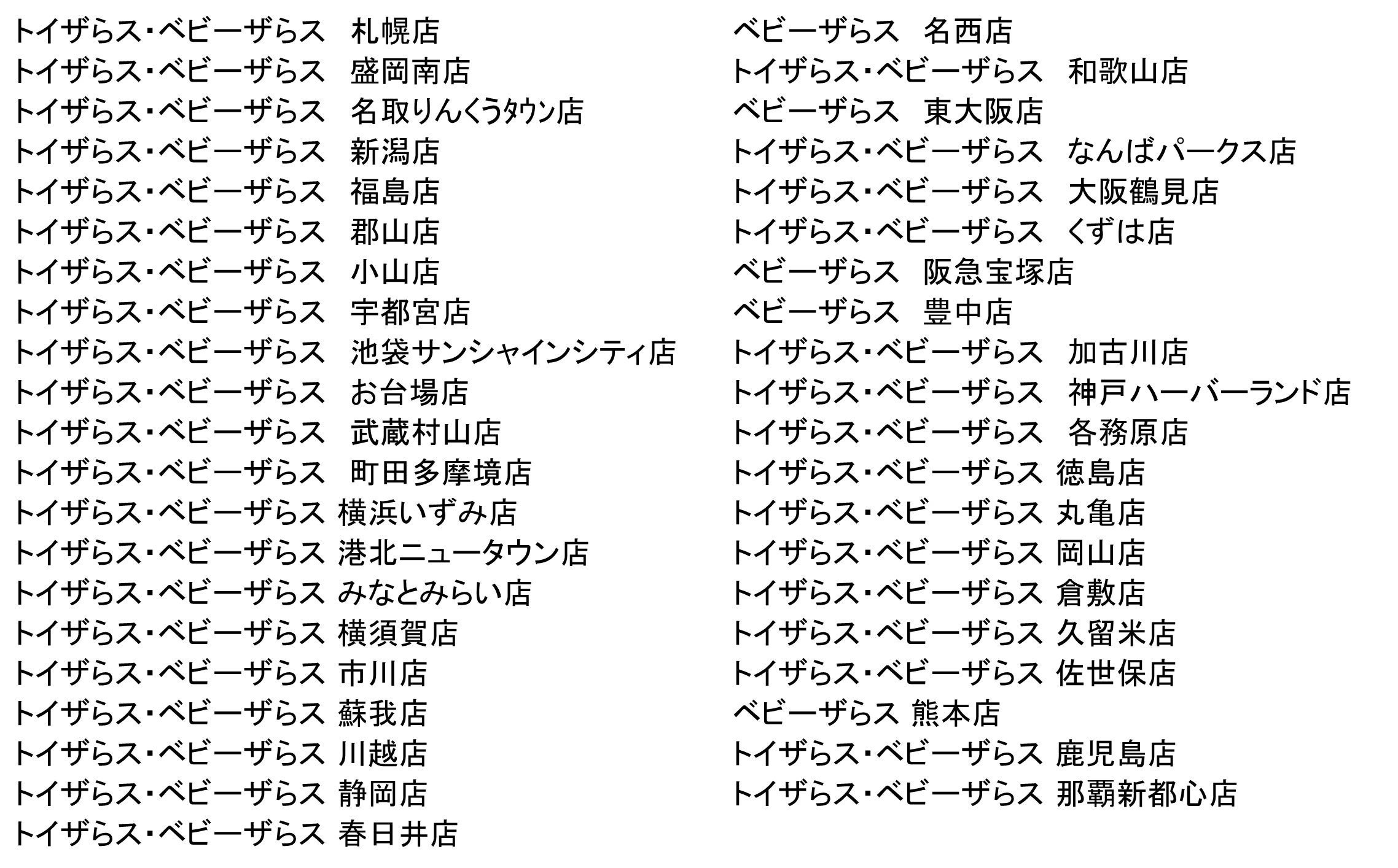 展開店舗:ベビーザらスおよびトイザらス・ベビーザらス併設型店の一部店舗