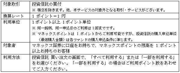 ~マネックスポイント1ポイントから投資信託の買付に利用可能~