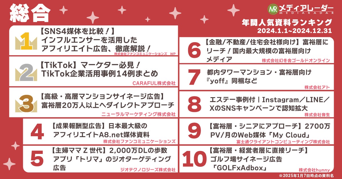【2024年年間】人気資料ランキングを発表!No.1*の広告・マーケティングプラットフォーム「メディアレーダー」