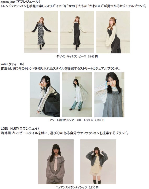 「apres jour」「kutir」「sedacle」など、40以上のEC専業ブランドを展開するBUZZWITによる、Z世代のトレンドが凝縮されたブランド複合型リアルショップ「BUZZWIT原宿」をはじめ、韓国発ミニマルブランド「MUCENT」、インフルエンサー・はうきによる「Hauls」など、多彩なNEW SHOPが続々とオープンします。