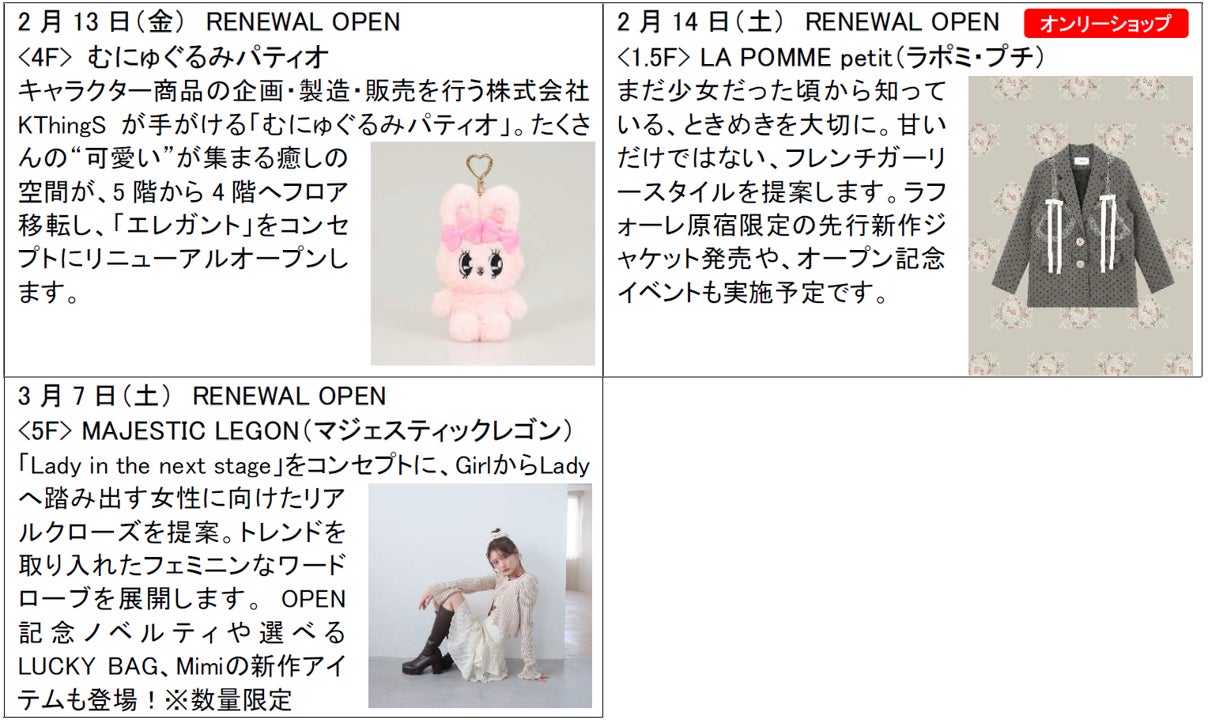 ラフォーレ原宿 2026年春のNEW&RENEWAL SHOP