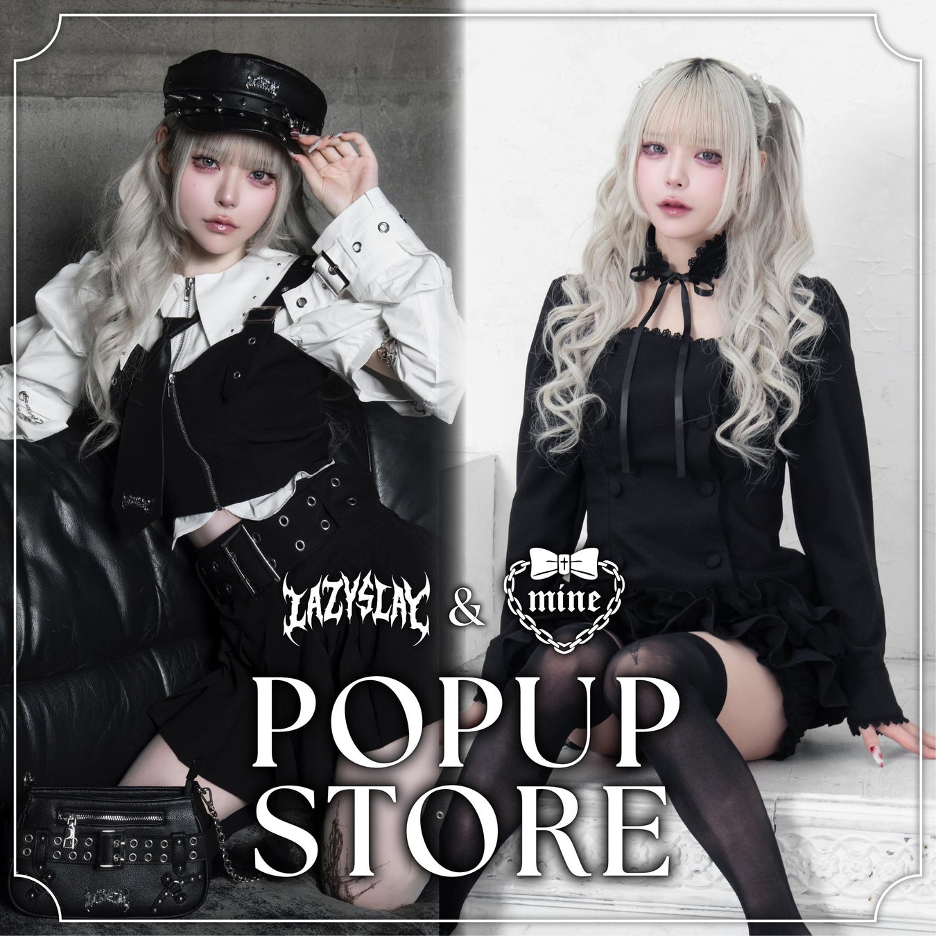 「媚びない私の戦闘服」を掲げ、弱さや迷いを抱えたままでも自分を信じて歩くためのスタイルを提案するLAZYSLAYと、「私だけの可愛いに愛着を」をコンセプトに、自分の“好き”を貫く地雷系ブランドmine。この2ブランドによる初の合同POP UP STOREを開催します。新作アイテムの展開に加え、実際に試着しながら選べる空間で、モノトーンを基調とした強さと可愛さ、そして自分だけの価値観を大切にする2つの世界観を同時に楽しめる特別なショップ体験をお届けします。