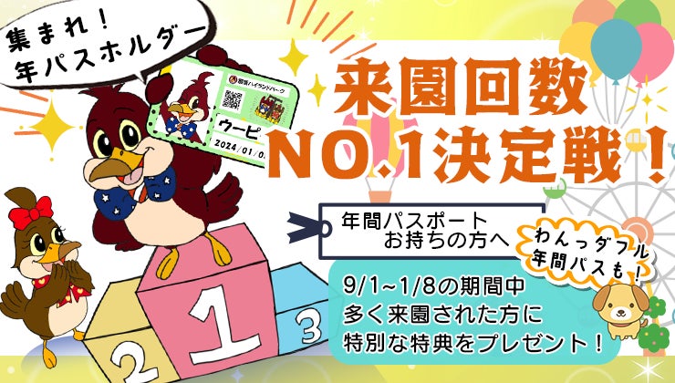 藤和那須リゾート株式会社(栃木県那須町/代表取締役社長:岩本 大二郎)が運営する“那須ハイランドパーク”では、2023年9月1日(金)~2024年1月8日(月)の期間中、年間パスポートとわんっダフル年間パスポート保持者の方へ、那須ハイ来園回数最多を決める戦い「来園回数No.1決定戦!」を開催いたします。