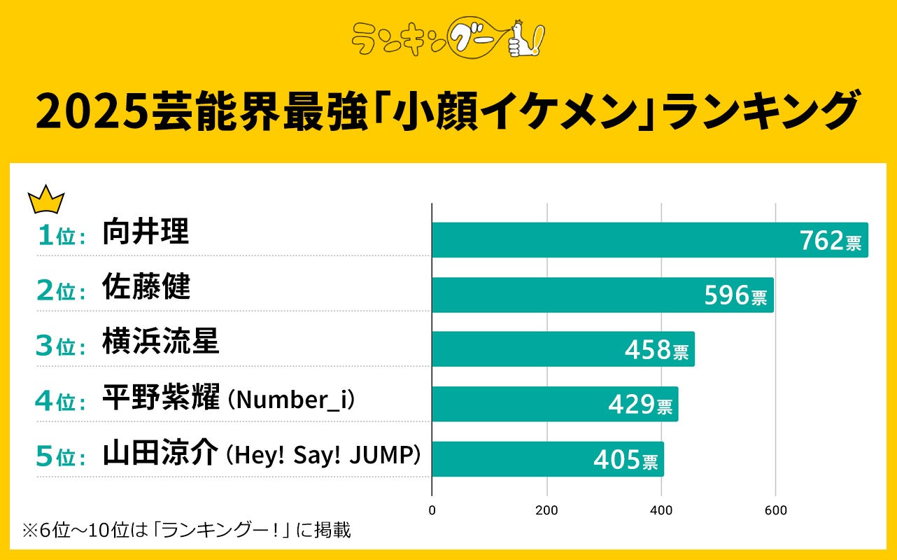 調査方法:株式会社CMサイトがインターネットリサーチした<2025芸能界最強「小顔イケメン」ランキング>のアンケート結果を集計。