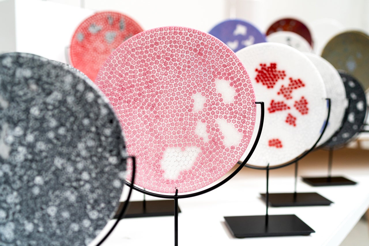本イベントの一環として、ポルトローナ・フラウ大阪では、イタリア・ムラーノ島を拠点に活動するガラス作家・土田康彦氏によるヴェネツィアンガラス展「五月の花」を開催いたします。ガラスという繊細な素材を通じて、生命の儚さと美しさを表現する土田氏の「五月の花」シリーズは、豊かな色彩によって、一瞬の美を永遠に閉じ込めたかのような印象を残します。色彩と光が織りなす幻想的な世界を、洗練されたインテリアとともにお楽しみいただけます。
