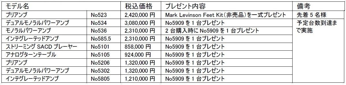 「Mark Levinson No500シリーズ、No5000シリーズプレゼントキャンペーン」実施