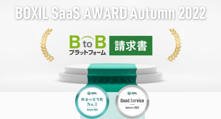 今回の「BOXIL SaaS AWARD Autumn 2022」は、2021年7月1日から2022年6月30日までの1年間で新たに投稿された口コミ約6,500件を審査対象としており、その結果、当社の「BtoBプラットフォーム 請求書」は、請求書発行システム部門で「Good Service」に選ばれ、その証となる「Good Serviceバッジ」が付与されました。