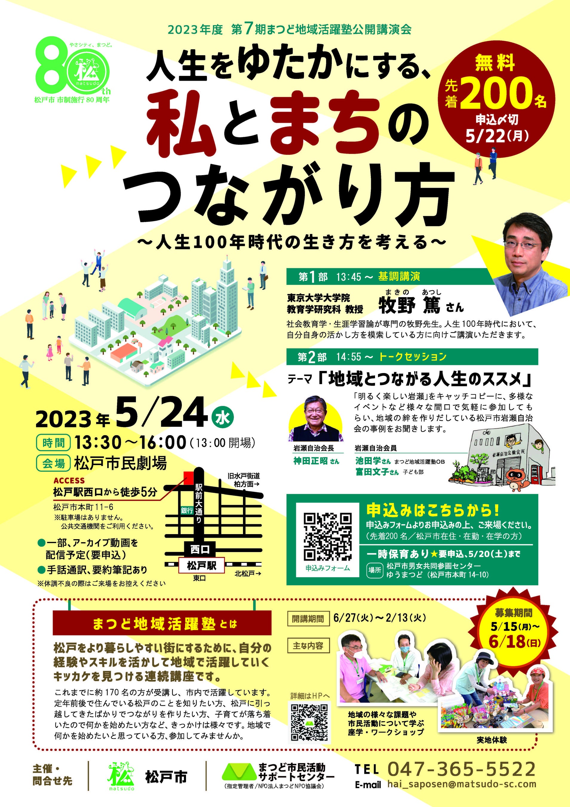 【まつど地域活躍塾・公開講演会 「人生をゆたかにする、私とまちのつながり方~人生100年時代の生き方を考える~」】