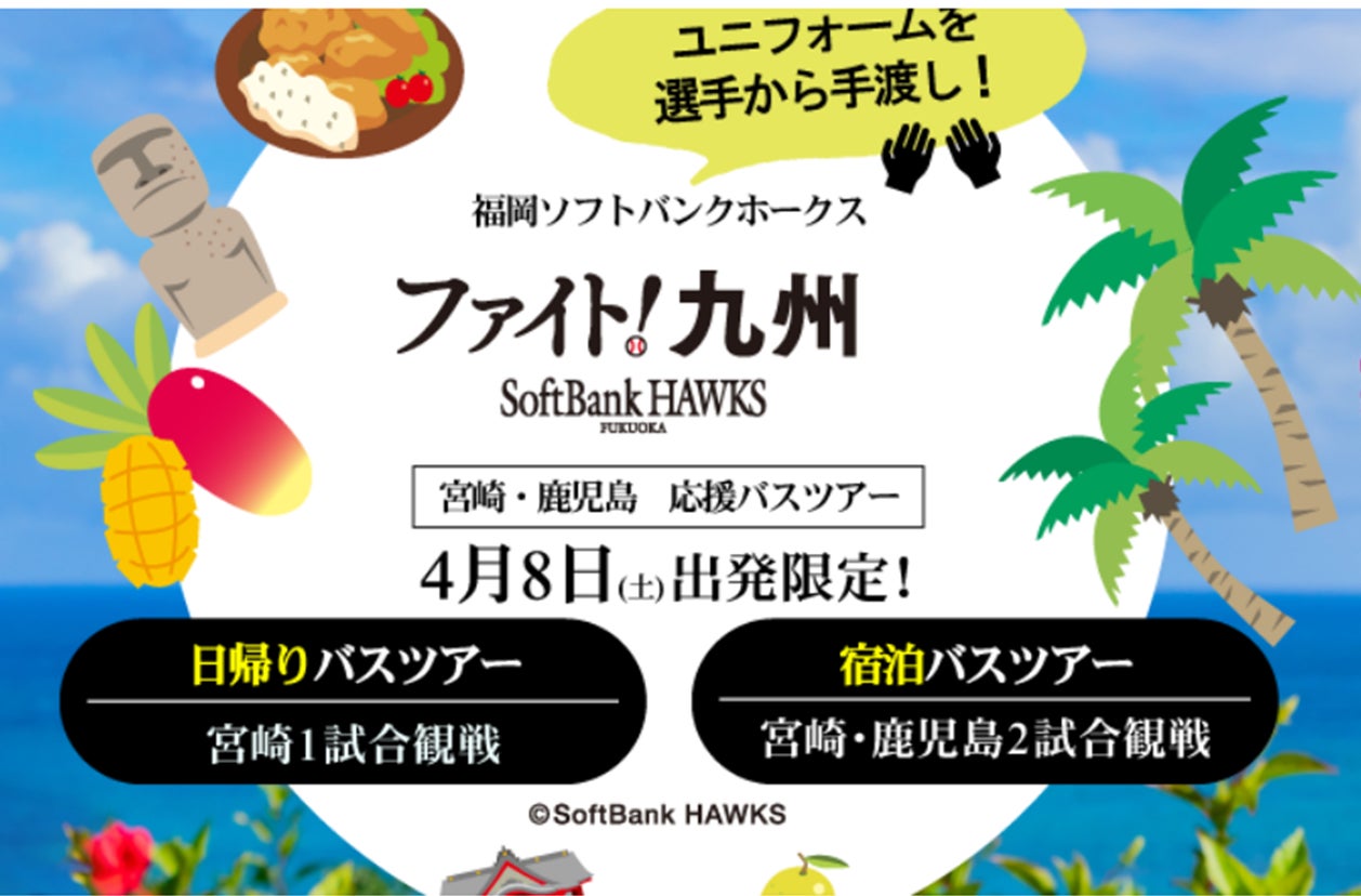 西鉄旅行「福岡ソフトバンクホークス ファイト!九州 in宮崎・鹿児島 応援バスツアー」を4月8日(土)出発にて発売中!