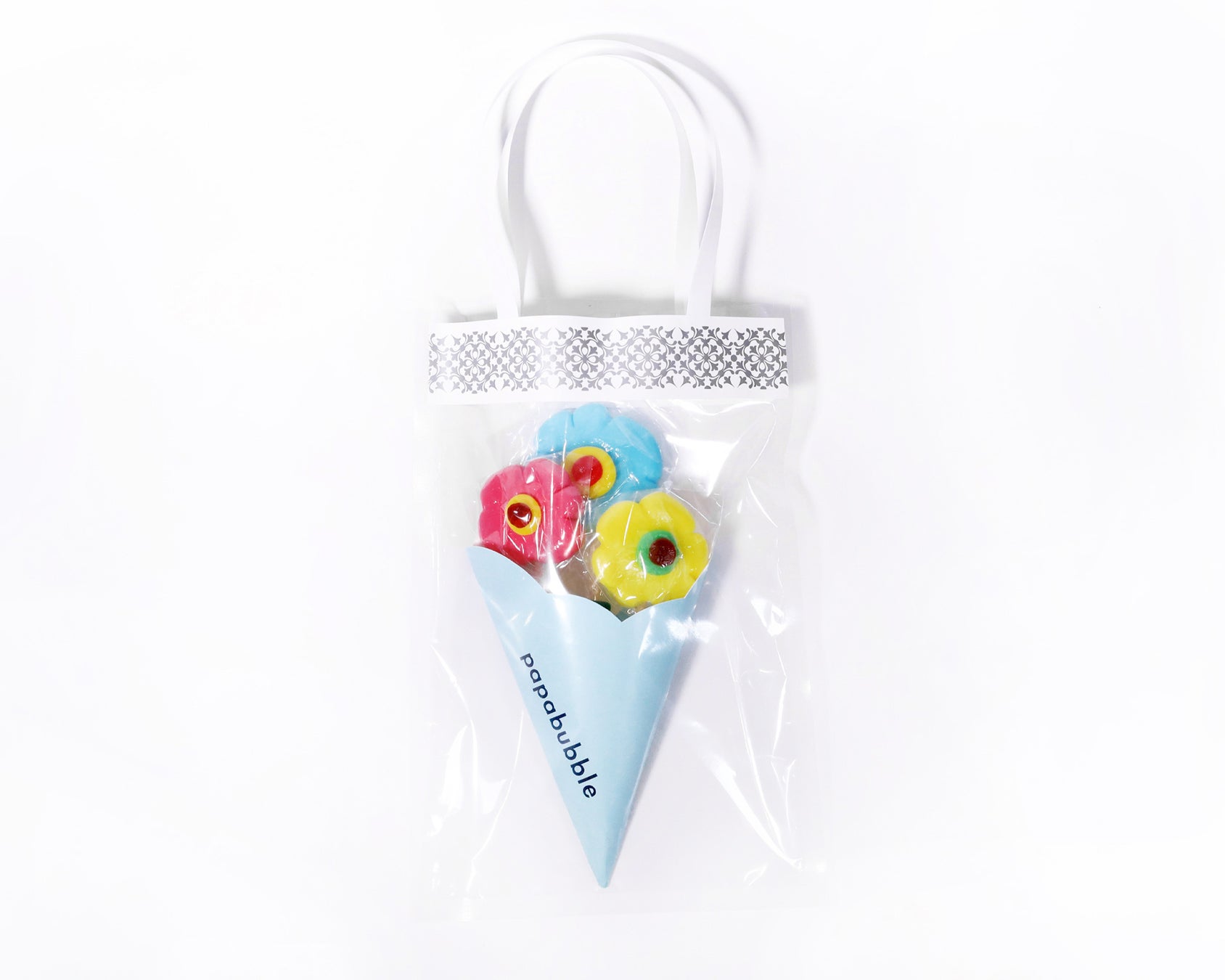 花束に想いを込めて贈りたいけれど、ちょっと恥ずかしい…そんな方にぴったりの、枯れないお花のギフトが新登場です。パステルカラーが可愛らしいキャンディは、「ソーダ×フルーツ」の爽やかな味わい。手提げ付きのラッピングなので、そのまま贈ることができ、手軽さも魅力のひとつです。ロリポップに憧れるお子様や、甘いものが好きな大人の方へ、今年のホワイトデーには、甘いお花のブーケを贈ってみてはいかがでしょうか?