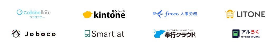 株式会社コラボスタイル、サイボウズ株式会社、フリー株式会社、株式会社GlobalB、株式会社ジョイゾー、M-SOLUTIONS株式会社、株式会社オービックビジネスコンサルタント、株式会社トリプルアイズ(計8社)