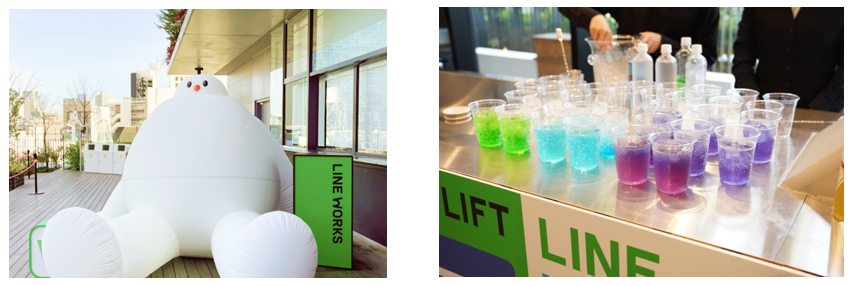 カンファレンスご参加の皆さまがご利用いただけるカフェスペースや、LINE WORKS オリジナルキャラクター、Davidと写真を撮ることができる、フォトスポットをご用意しています。
