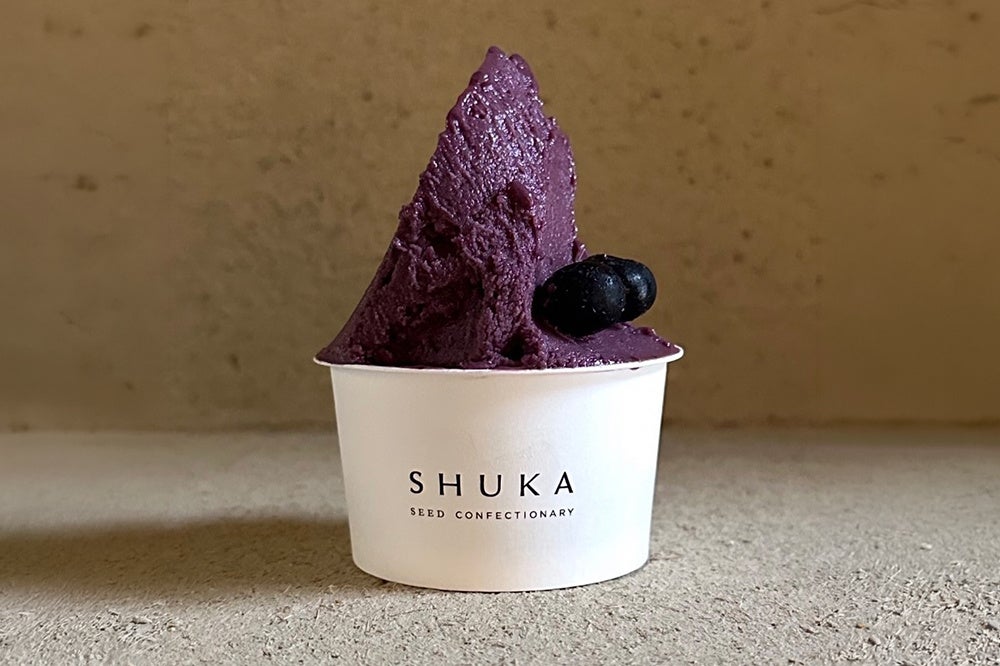 京都で100年愛されてきた甘納豆専門店発の種菓子ブランド「SHUKA/種菓」より、「SHIKI FARMERS CLUB」との限定コラボフレーバーが登場。静岡県の農園のブルーベリーに豆乳を合わせ、乳不使用でありながら爽やかで深みのある味わいに仕上げました。