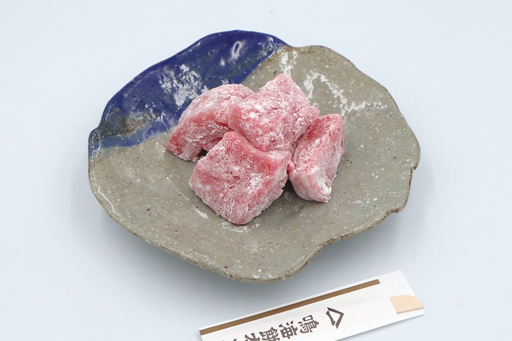 奈良の「LIP幸せいちご園」と京都の老舗餅屋「鳴海餅本店」がコラボレーションした、イベント限定のいちご餅。規格外品となったいちごを使用し、ふわふわとした食感の餅に練り込んだ、果実と米の甘みが調和した商品です。