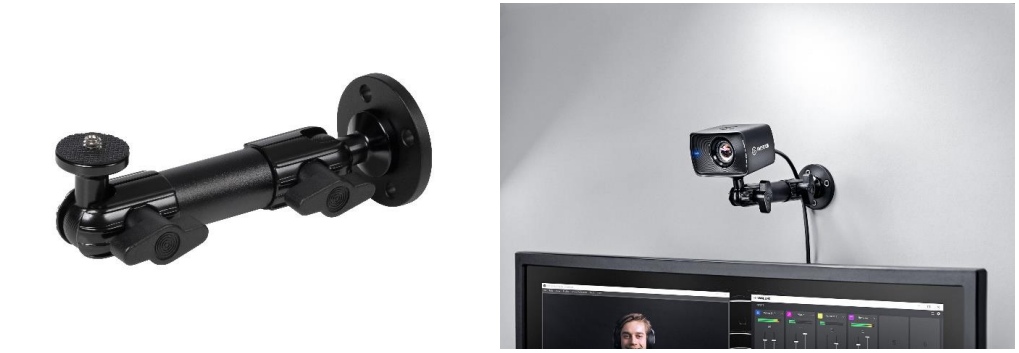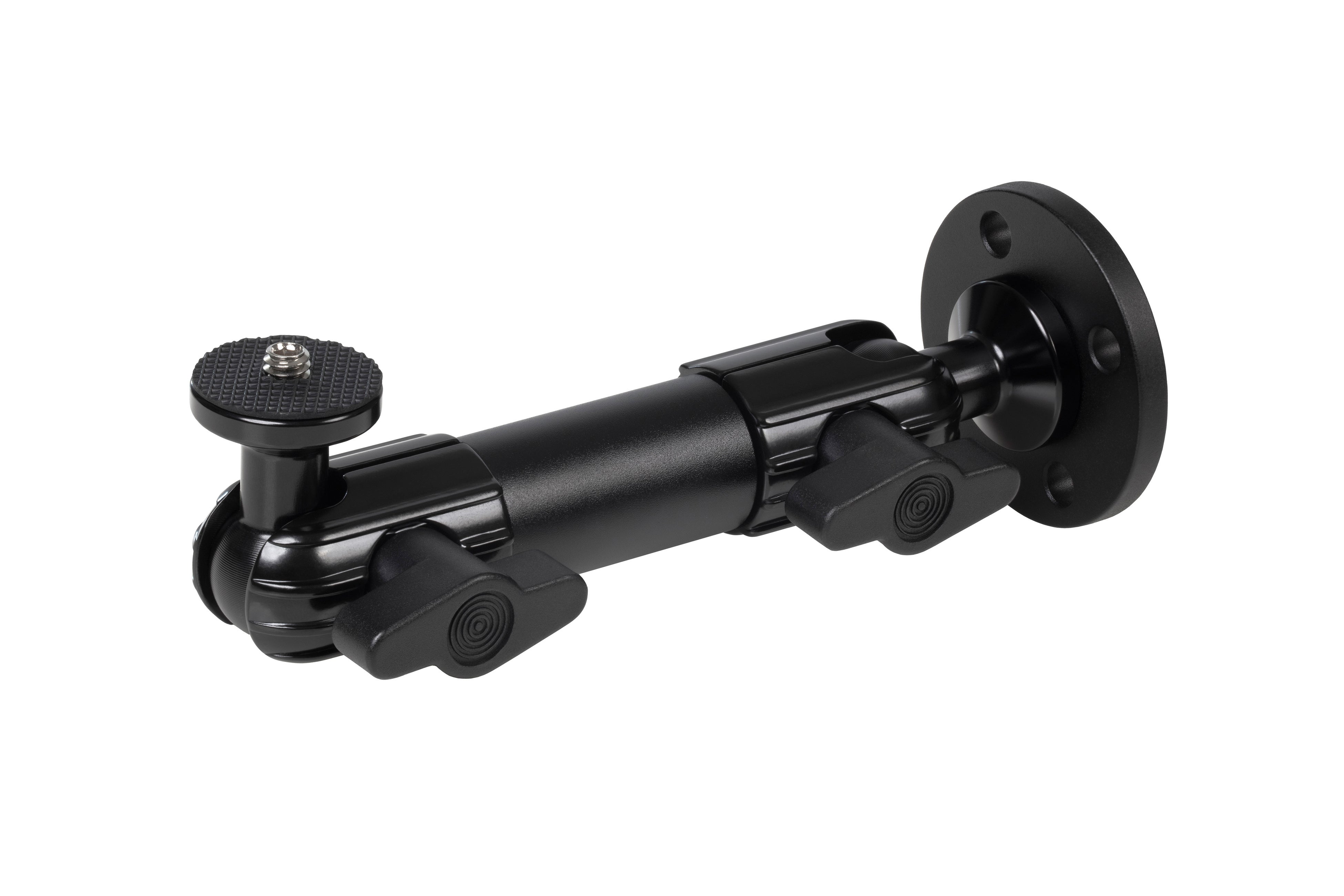 壁に設置するタイプのMulti Mountモジュラーリグ(壁取り付けアーム)。ボールヘッドとボールジョイントを組み合わせたポール設計と1/4インチネジ接続によりカメラや照明機材などを自在に取り付けることができます。