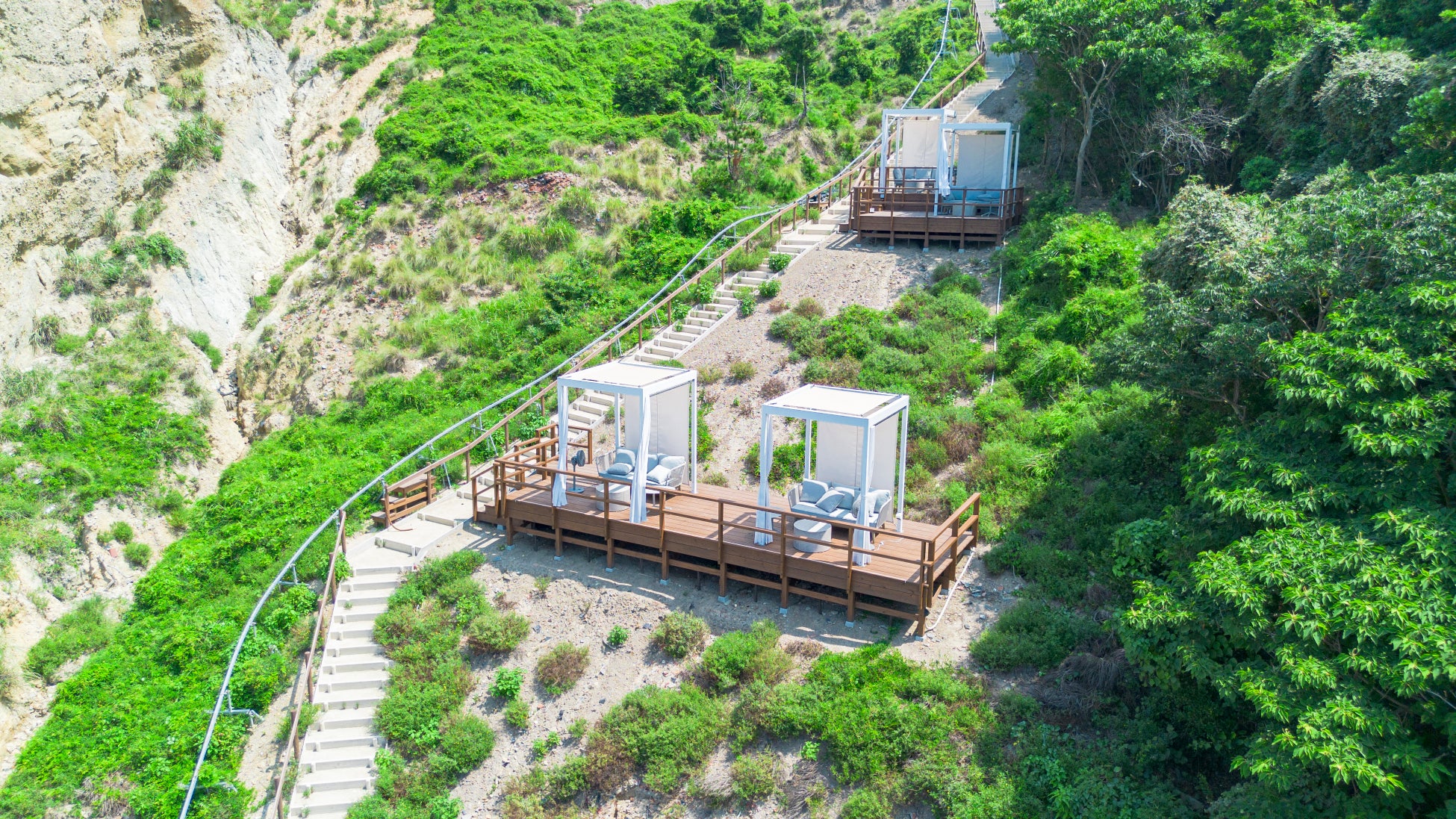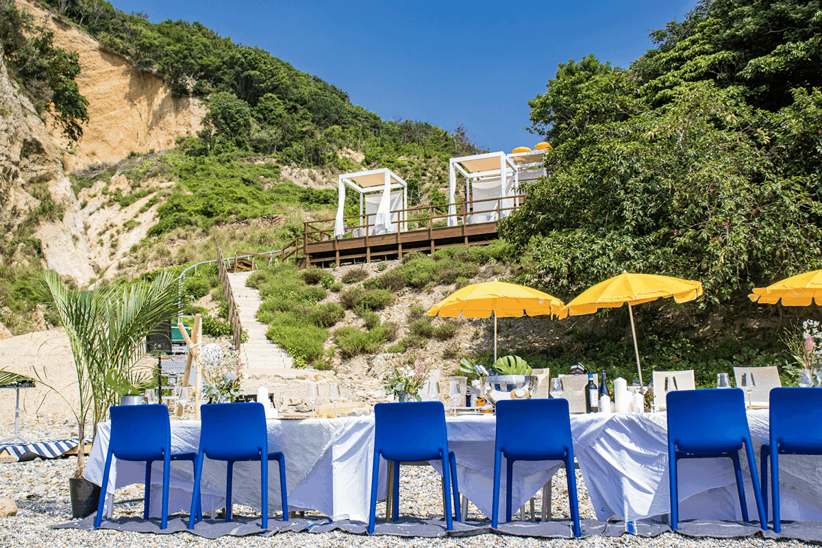 地図にない絶景を独占する崖の中腹に新設された特別テラス席。完全オーダーメイドのビーチパーティープランも登場