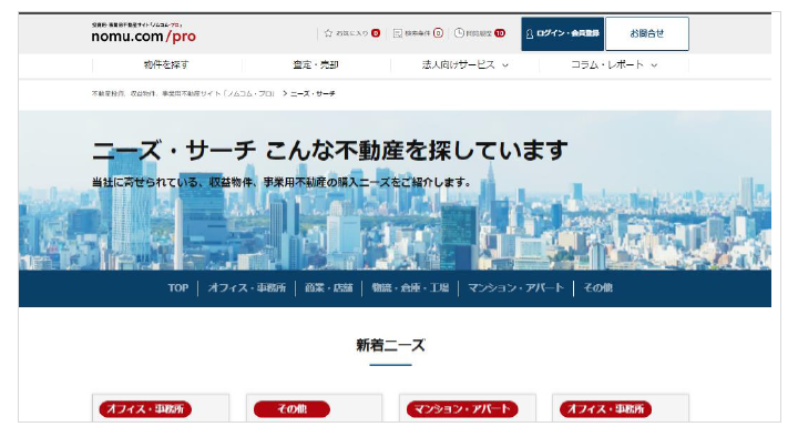投資用・事業用不動産サイト「ノムコム・プロ」をリニューアル購入ニーズの検索性を強化した「ニーズ・サーチ」をリリース