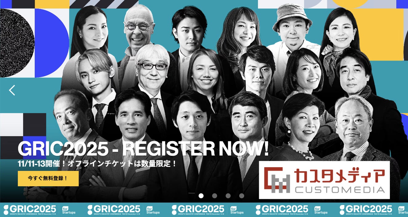 株式会社カスタメディア(本社:大阪市北区、代表取締役:宮﨑耕史)は、2025年11月11日(火)〜11月13日(木)に開催されるフォースタートアップス株式会社(本社:東京都港区、代表取締役: 志水 雄一郎)主催の『GRIC2025』にてブース出展を行い、シルバースポンサーとして協賛します。