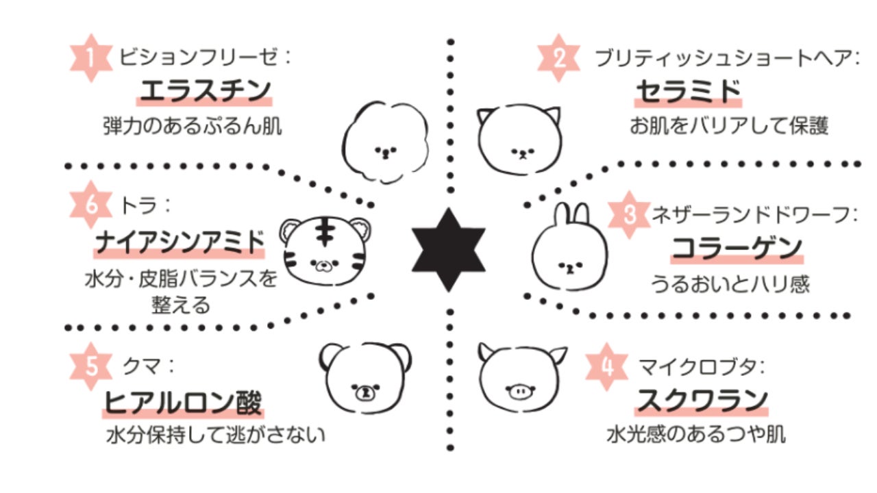 6つのスター成分を贅沢に配合 (すべて保湿)