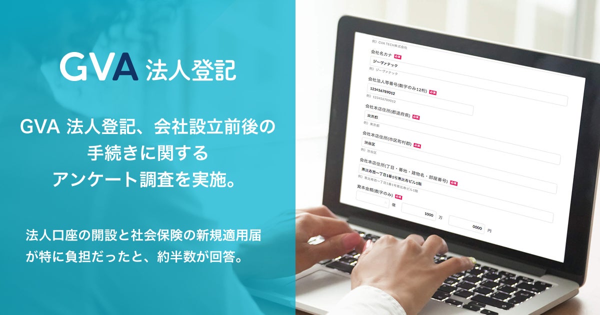 GVA TECH、起業家に会社設立前後の手続きに関するアンケートを実施。法人口座の開設と社会保険の新規適用届が負担だと、約半数が回答