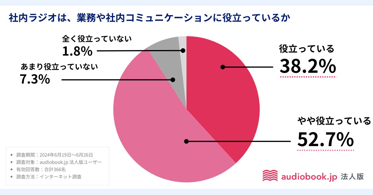 オトバンクは、audiobook.jp 法人版の新機能として、音声版の社内報「社内ラジオ」を昨秋からスタートしています。そこで、「社内ラジオ」を導入している企業にも、利用状況をアンケート調査しました。